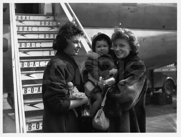 British singer Ruby Murray with her sister Lillian Duffey and Duffey's daughter by a BOAC aeroplane