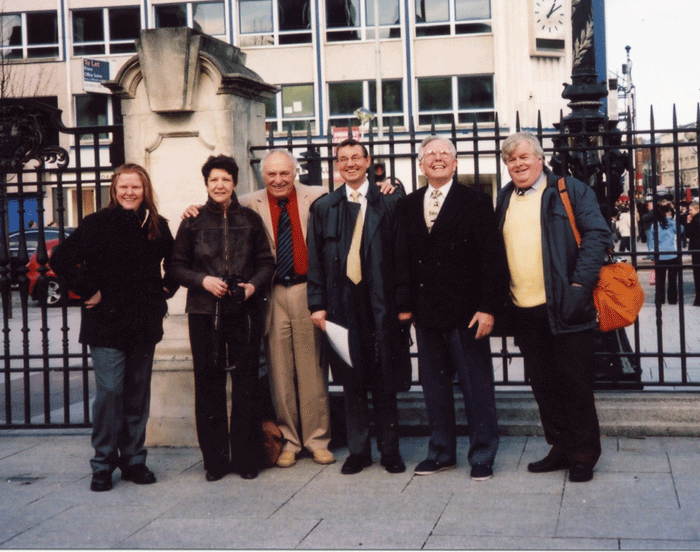 Julie, Sandy, Frank, Gerald, Bernie, John at the City Hall Gates