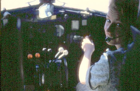 Ruby at the controls of a Valetta aircraft during a C.S.E. tour of Malta, Cypress and North Africa